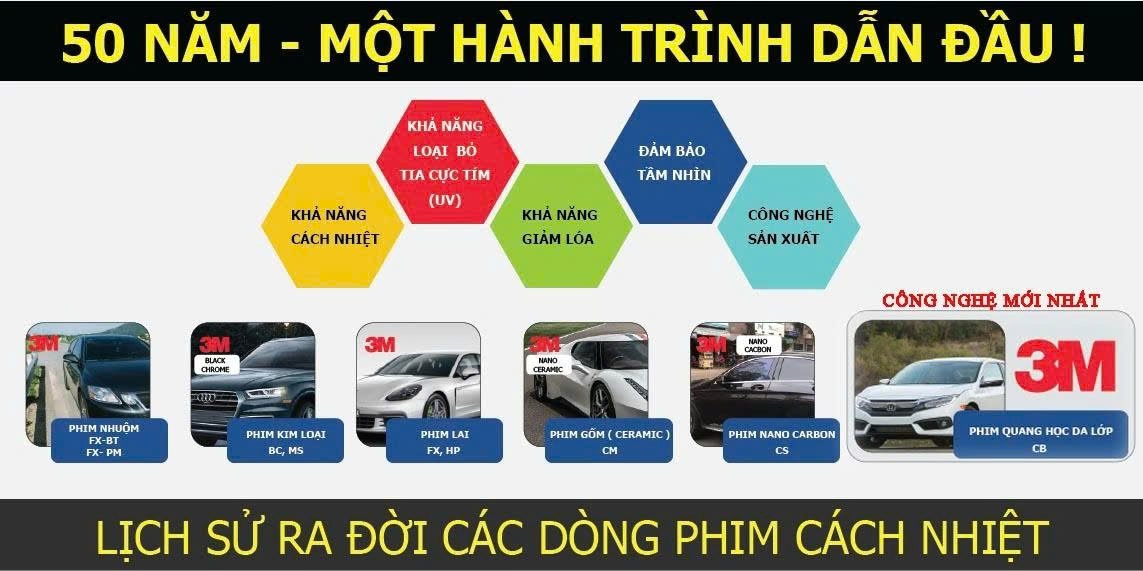 Cải thiện sự thoải mái, bảo vệ sức khỏe, bảo vệ nội thất và ngăn chặn tia UV là điểm nổi bật của Phim cách nhiệt ô tô 3M. Phim 3M tự hào là nhà sở hữu bằng sáng chế phim cách nhiệt đa lớp và quản lý ánh sáng đầu tiên trên thế giới vào năm 1966. Các sản phẩm phim dán kính được cải tiến liên tục của 3M đã giúp đem lại giải pháp tối ưu trong việc bảo vệ con người khỏi các tia có hại của mặt trời hơn 50 năm qua.