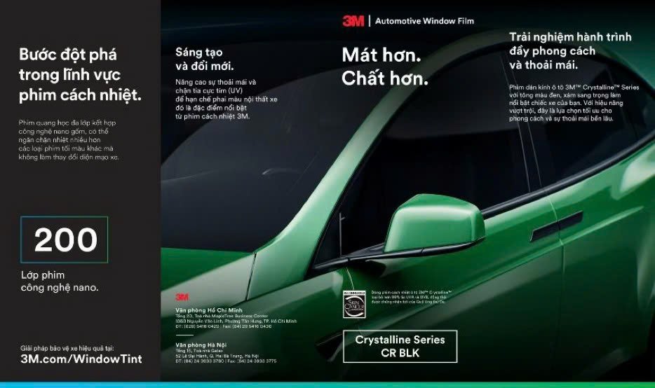 Đột phá mới trong ngành công nghiệp phim dán kính cách nhiệt. Dòng phim cách nhiệt siêu cấp quang học đa lớp 3M Crystalline cho khả năng cản nhiệt tốt hơn so với các film phim tối màu khác nhưng không làm thay đổi vẻ đẹp bên ngoài của chiếc xe, ngôi nhà hay thậm chí cả tàu thuyền. Vì vậy Crystalline Series luôn là sự lựa chọn tin cậy, mang đến cảm giác thoải mái vượt trội.