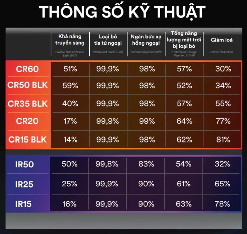 - Chỉ số cách nhiệt IR (Tia hồng ngoại) lên tới 97%