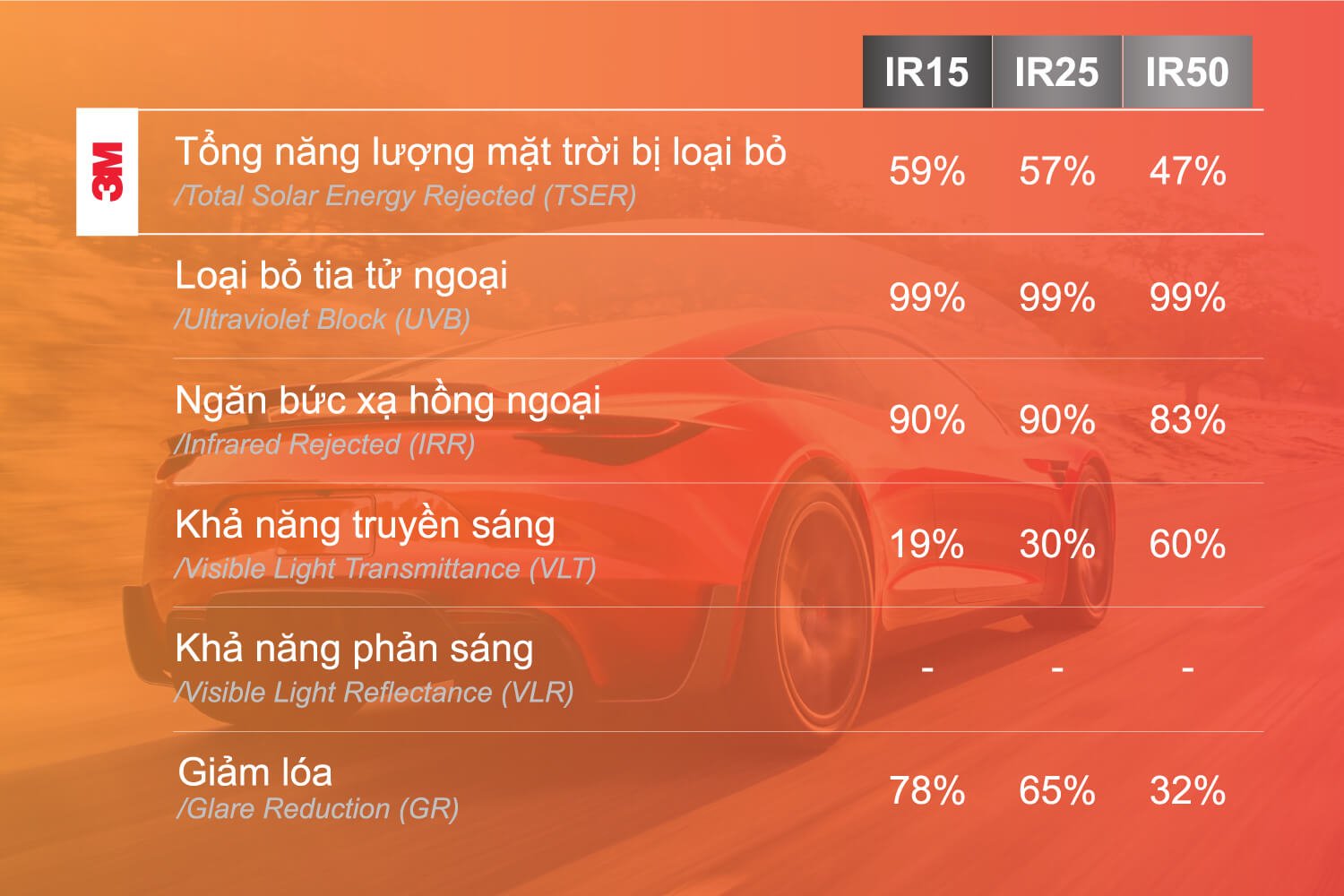 Dòng 3M: Là một trong những thương hiệu phim cách nhiệt lâu đời xuất xứ tại Mỹ và nổi tiếng nhất trên thị trường, với công nghệ quang học nano 200 lớp phi kim loại được nhiều khách hàng Việt Nam biết đến. Sản phẩm của 3M có độ bền cao, chống trầy xước và giảm nhiệt độ hiệu quả.