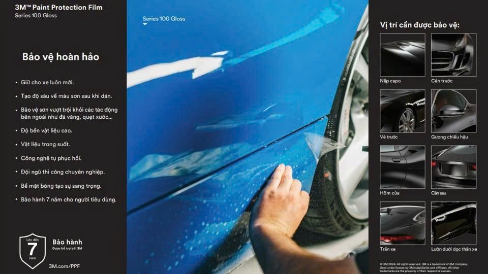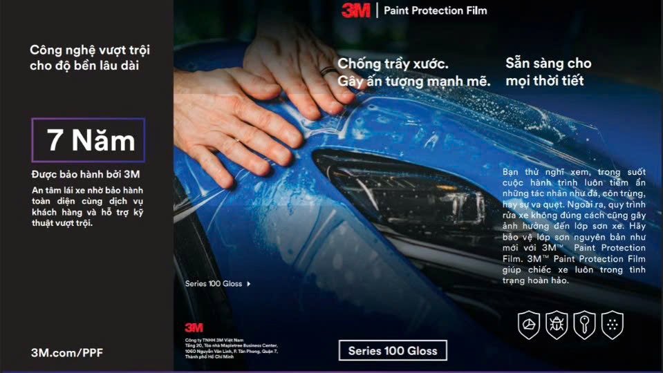 Với công nghệ vật liệu tiên tiến và độ hoàn thiện thẩm mỹ cao, 3M 100 Gloss Series Paint Protection Film mang đến giải pháp bảo vệ hiệu quả cho lớp sơn xe.